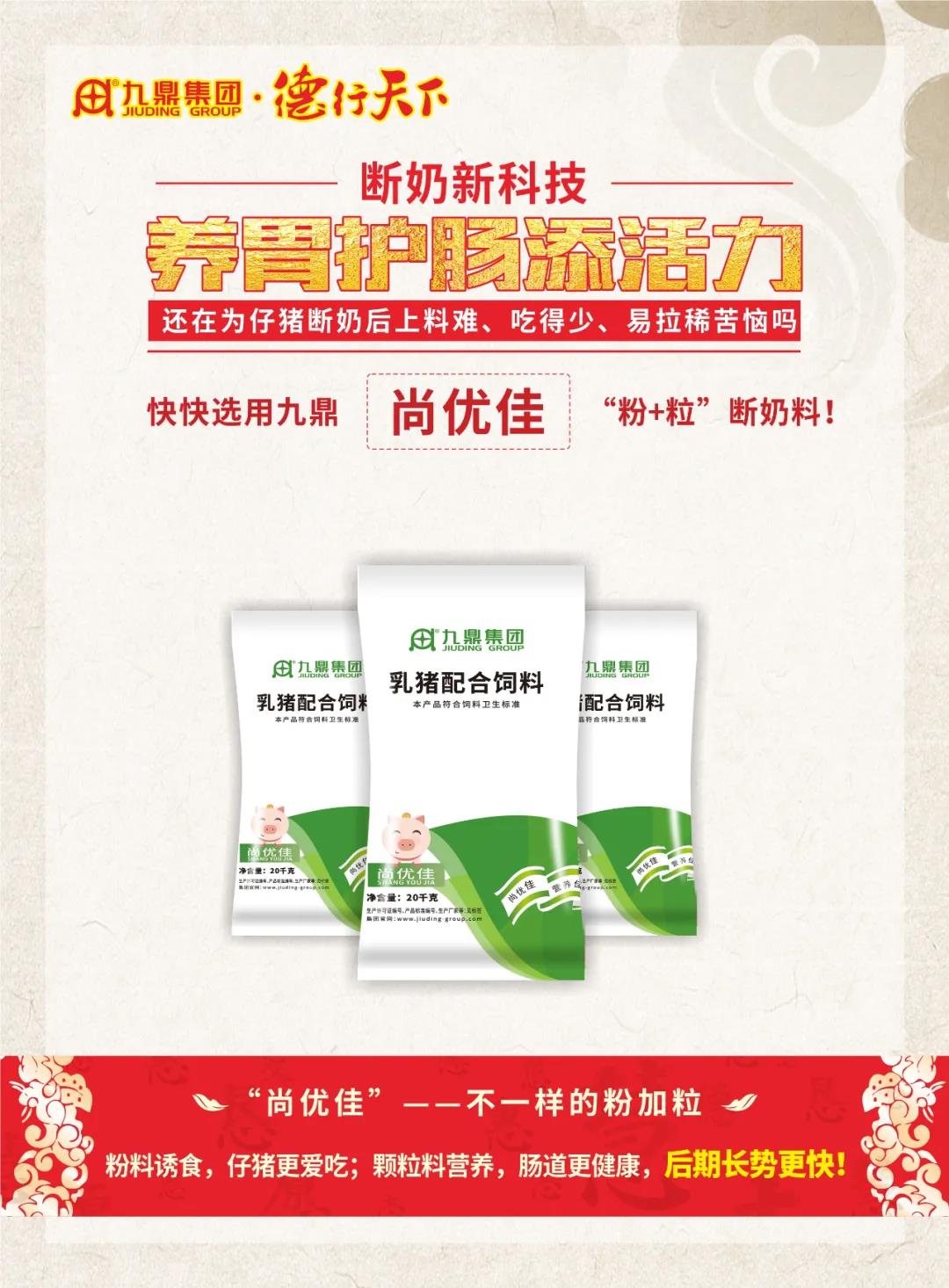 馬總說(shuō):九鼎集團(tuán)1997年在行業(yè)內(nèi)率先推出“超早斷奶料”,27年來(lái)九鼎集團(tuán)始終圍繞一頭豬專注于精準(zhǔn)營(yíng)養(yǎng),為廣大客戶提供無(wú)抗環(huán)保綠色安全的產(chǎn)品和服務(wù),踐行了不忘初心堅(jiān)持匠心產(chǎn)品。教槽料的普及、使用程度的高低代表著養(yǎng)豬水平的高低,期盼同行業(yè)企業(yè)與我們一起推廣好產(chǎn)品,推動(dòng)養(yǎng)豬業(yè)的發(fā)展進(jìn)步。在各個(gè)有識(shí)之士和優(yōu)秀企業(yè)的共同努力中,養(yǎng)豬行業(yè),未來(lái)可期。