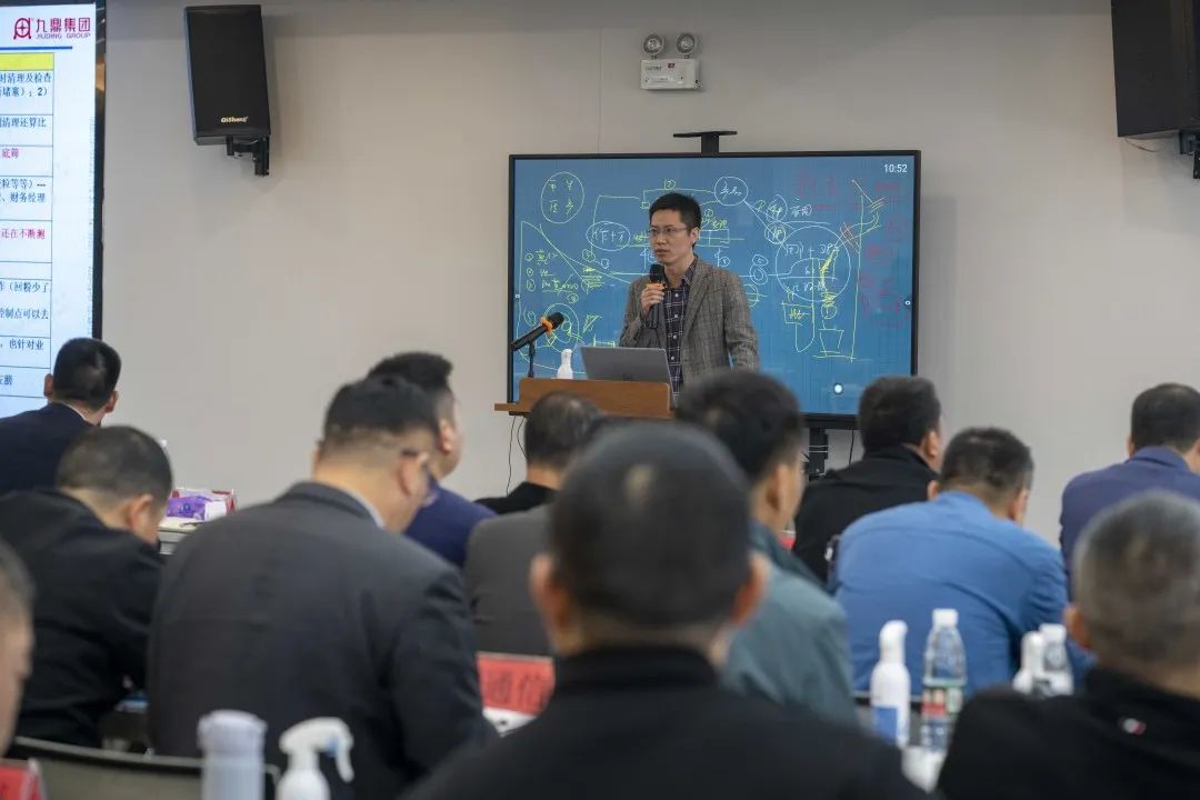4月7日-8日,九鼎集團2023年一季度經(jīng)營分析會在長沙總部召開,集團董事長楊林、總裁喻文鋒等領導班子成員與總部及各分子公司100余位管理層精英齊聚一堂,回顧總結公司2023年一季度的生產經(jīng)營發(fā)展情況及重點工作推進情況,對工作中發(fā)現(xiàn)的問題進行深入剖析,并深入學習貫徹集團董事會關于“戰(zhàn)略回歸 穩(wěn)健發(fā)展”的主題精神,會議由集團董事長助理張國球主持。