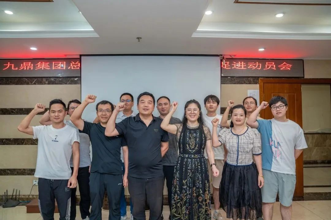 在全場(chǎng)“九鼎超吉大,效果超級(jí)好”的嘹亮歡呼聲中,肖總與5個(gè)聯(lián)合工作小組分別進(jìn)行了宣誓。5個(gè)聯(lián)合工作小組均由產(chǎn)品、研發(fā)、采購(gòu)、運(yùn)營(yíng)4線人員組成,旨在對(duì)分子公司的銷(xiāo)量、產(chǎn)品競(jìng)爭(zhēng)力、成本及質(zhì)量進(jìn)行有效促進(jìn)。